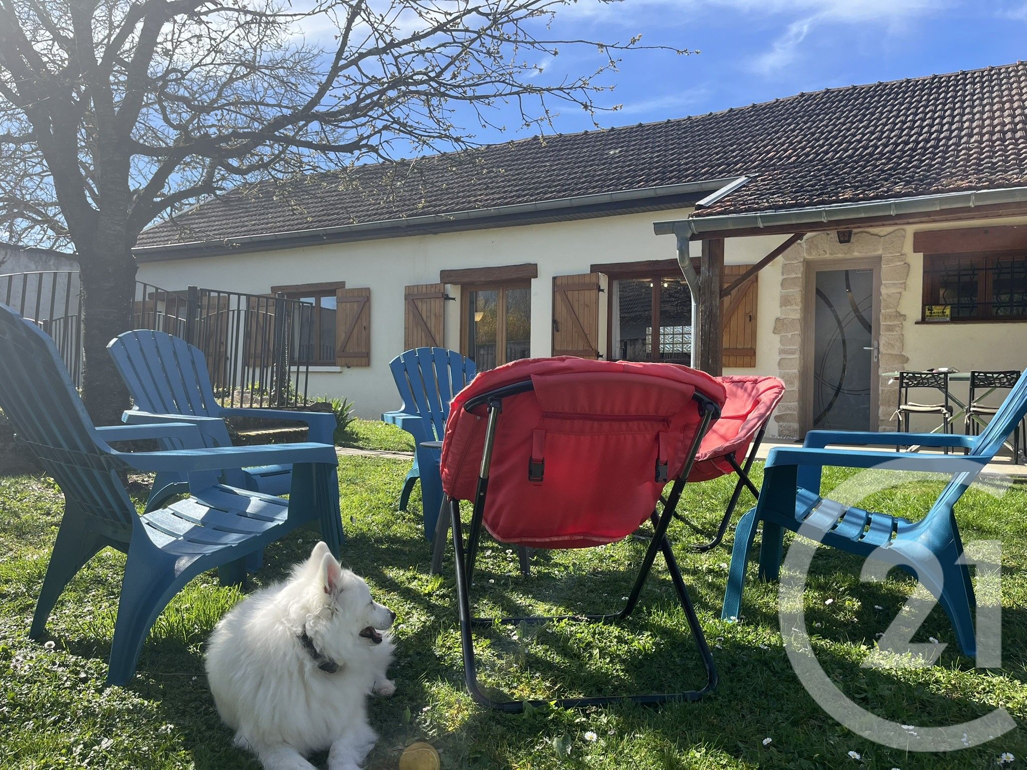 À l'extérieur, vous profiterez d'un terrain ensoleillé, parfait pour les moments de détente, les repas en plein air ou simplement profiter des beaux jours dans un cadre tranquille.